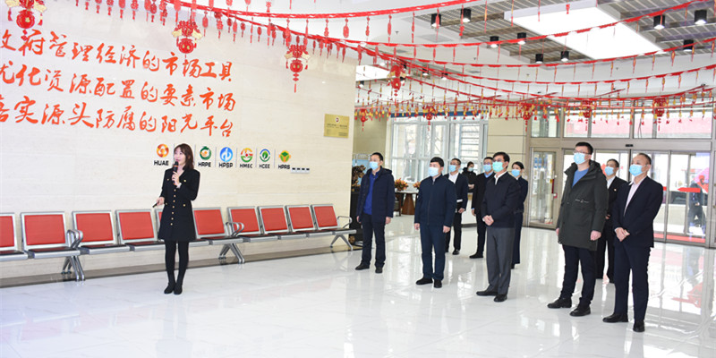 調(diào)研座談會(huì)前,張玉福一行在交易大廳聽(tīng)取了交易集團(tuán)基本情況和業(yè)務(wù)板塊介紹,并參觀了集團(tuán)黨建工作和企業(yè)文化墻展示。