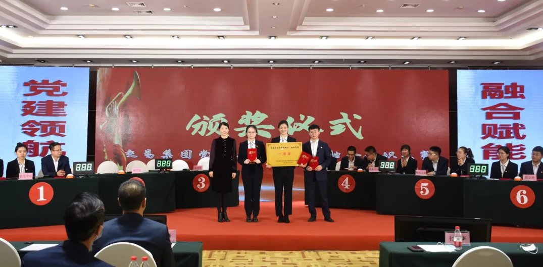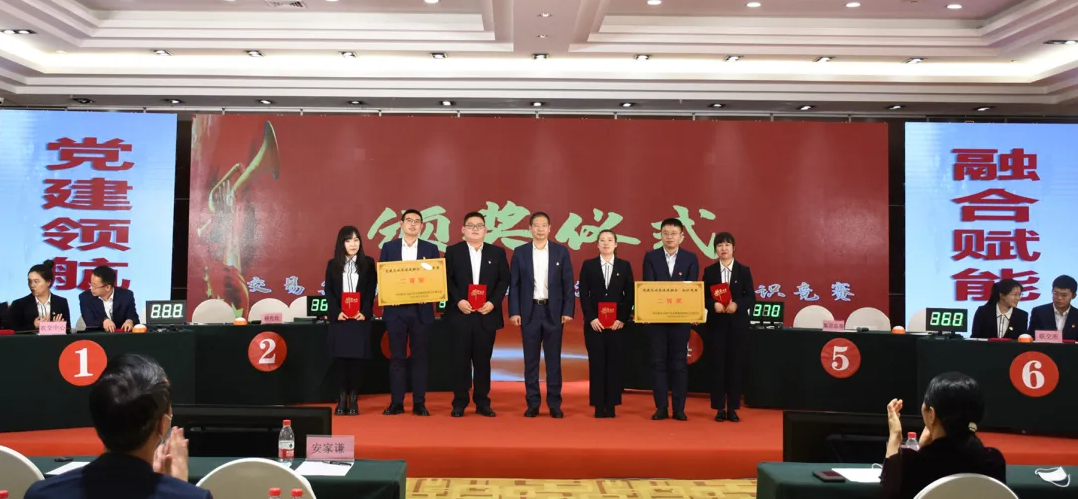 “國資國企改革發(fā)展研究院代表隊最終以380分的優(yōu)異成績,榮獲集團(tuán)黨建與業(yè)務(wù)深度融合知識競賽一等獎!”接過證書與獎牌,在聚光燈下,參賽隊員在舞臺上享受著知識帶來的榮譽(yù)與自豪。經(jīng)過2個小時緊張激烈的角逐比拼,交易集團(tuán)“黨建領(lǐng)航 融合賦能”黨建與業(yè)務(wù)深度融合知識競賽于近日圓滿落下帷幕。