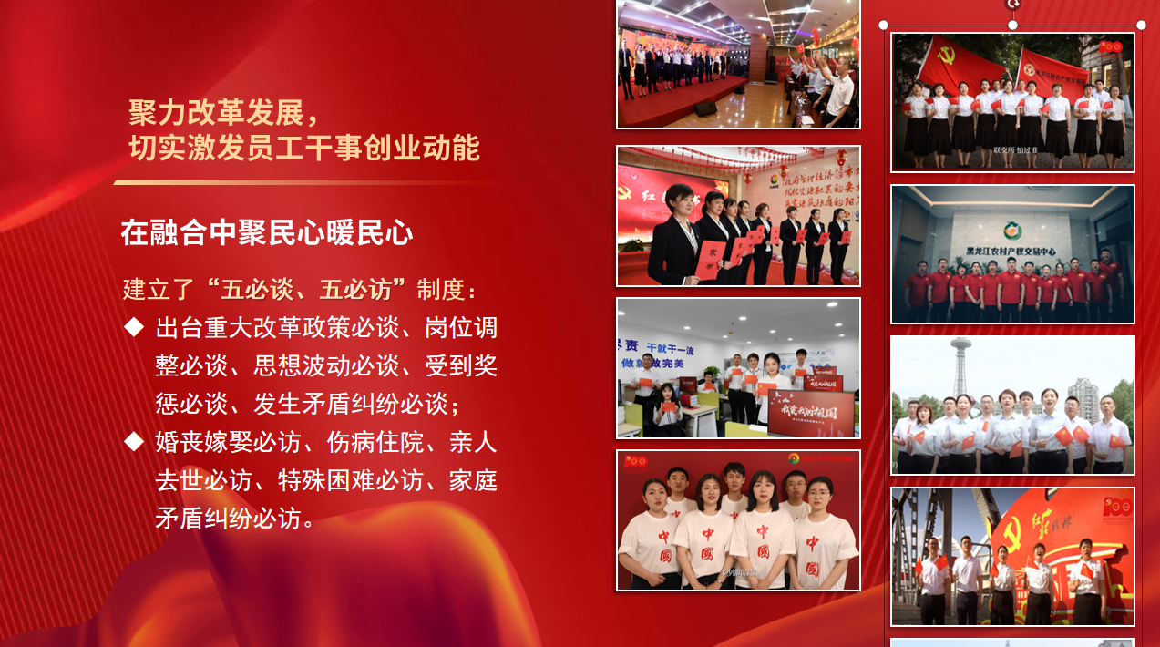 集團(tuán)黨委還引導(dǎo)黨員員工開展自主教育,組織開展“四愛四創(chuàng)”主題思想教育、“提質(zhì)增效、黨員先行”主題實(shí)踐活動和“我為集團(tuán)發(fā)展獻(xiàn)一策”建議征集活動,充分激發(fā)員工“主人翁”意識,通過發(fā)揮思想政治工作統(tǒng)一思想、凝聚共識的重要作用,推動集團(tuán)不斷實(shí)現(xiàn)高質(zhì)量發(fā)展,為龍江全面振興全方位振興貢獻(xiàn)了平臺力量。