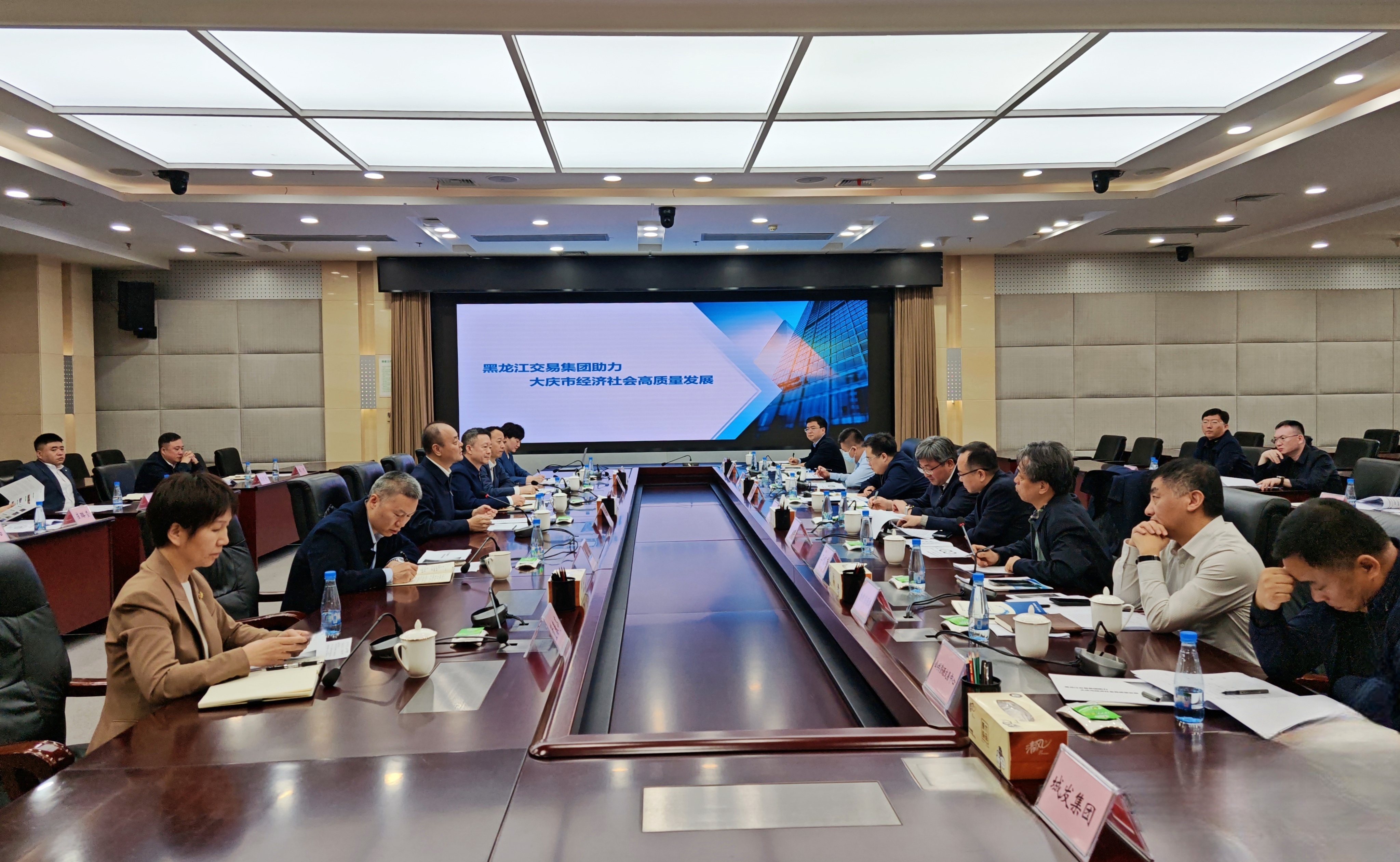 王立峰對(duì)大慶市政府給予的關(guān)注和支持表示感謝。他表示,大慶市作為黑龍江省經(jīng)濟(jì)發(fā)展的“排頭兵”,在全省經(jīng)濟(jì)格局中占據(jù)著舉足輕重的戰(zhàn)略地位。這里既是國(guó)家級(jí)石化產(chǎn)業(yè)基地,又是戰(zhàn)略新興產(chǎn)業(yè)集聚地,產(chǎn)業(yè)動(dòng)能強(qiáng)勁、資源稟賦獨(dú)特,正是交易集團(tuán)深化市場(chǎng)化服務(wù)的核心戰(zhàn)略區(qū)域。交易集團(tuán)將以此次座談為契機(jī),堅(jiān)持“政府主導(dǎo)、市場(chǎng)化運(yùn)營(yíng)”的原則,探索構(gòu)建"本地服務(wù)精準(zhǔn)化、區(qū)域協(xié)同高效化、全省資源一體化"的多層次區(qū)域公共資源市場(chǎng)服務(wù)體系。重點(diǎn)推出“大慶定制”市場(chǎng)化服務(wù)矩陣,充分發(fā)揮招商引資平臺(tái)、“兩非兩資”盤活平臺(tái)、助農(nóng)惠農(nóng)平臺(tái)、“招才匯智”平臺(tái)、科技成果轉(zhuǎn)化平臺(tái)、碳匯價(jià)值轉(zhuǎn)化平臺(tái)、陽(yáng)光招采平臺(tái)、數(shù)據(jù)交易平臺(tái)等9個(gè)專業(yè)化平臺(tái)功能,為大慶市經(jīng)濟(jì)社會(huì)發(fā)展提供“交易+數(shù)智+服務(wù)”市場(chǎng)化服務(wù)支撐,共同架起市企合作的“市場(chǎng)橋梁”,疏通大慶要素流動(dòng)“關(guān)鍵脈絡(luò)”,以市場(chǎng)化“金鑰匙”開啟營(yíng)商環(huán)境優(yōu)化新篇章,奏響龍江振興的共贏樂章。