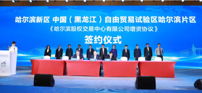 簽約儀式上,交易集團黨委書記、董事長孫光遠代表交易集團與哈爾濱新區(qū)、省新產(chǎn)業(yè)投資集團共同簽署《哈爾濱股權(quán)交易中心有限公司增資協(xié)議》,交易集團黨委委員、董秘徐松之參加會議。